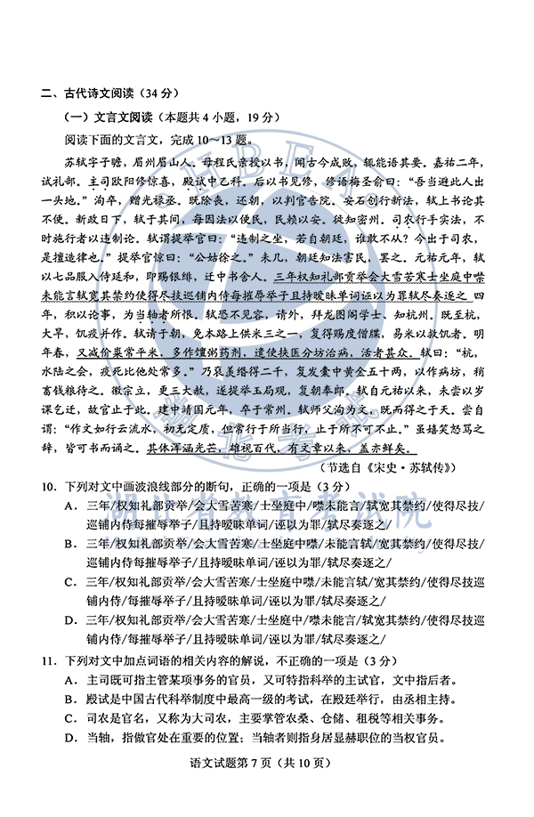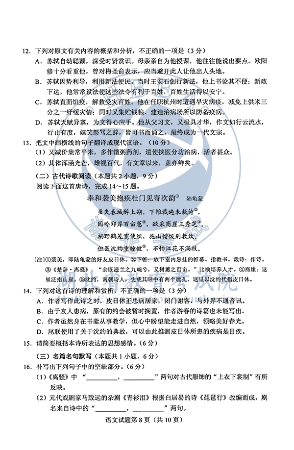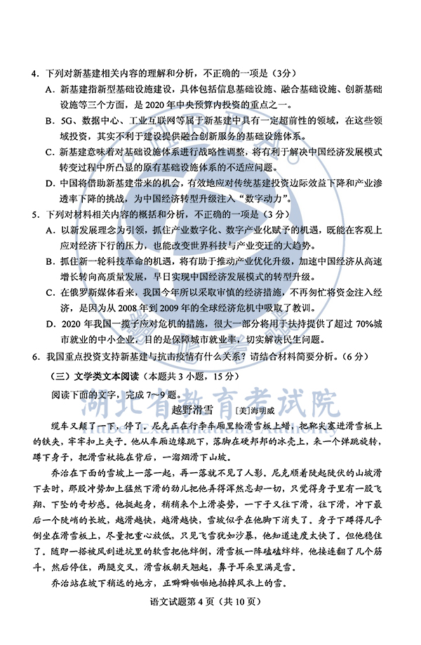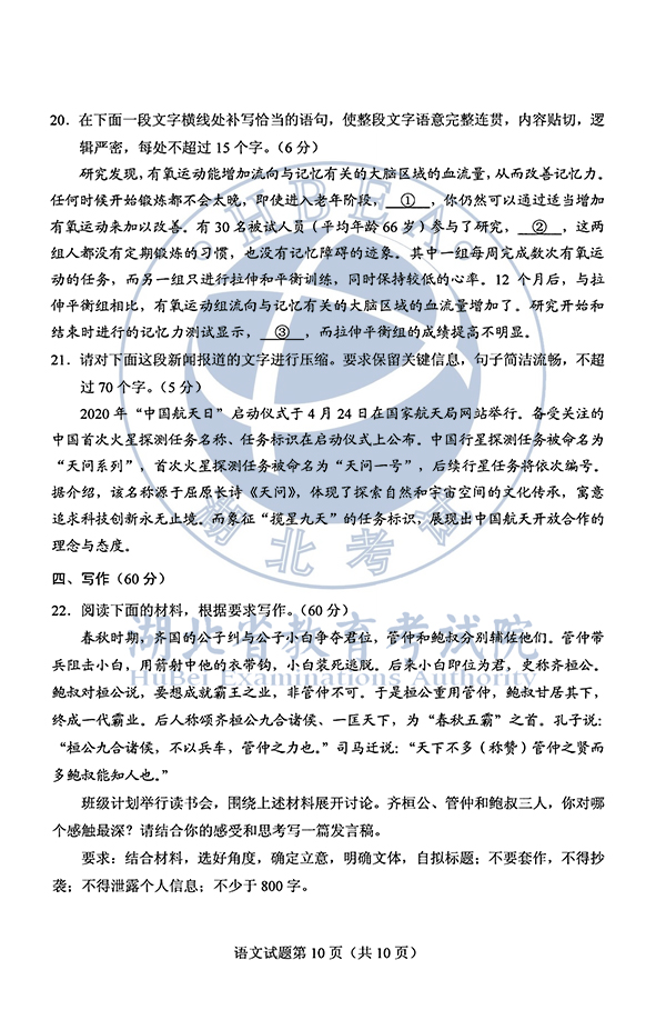 2020湖北高考语文试卷及参考答案(公布)