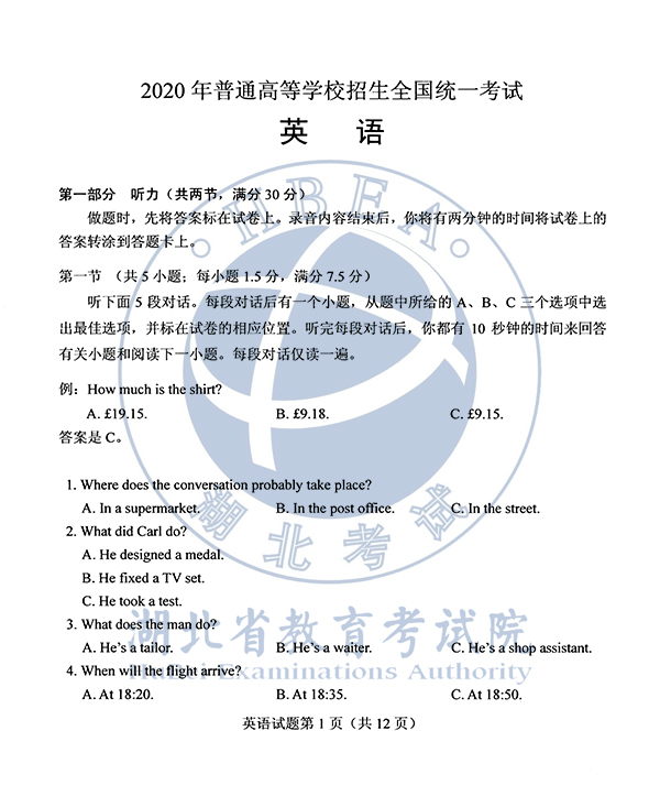 全国各地高考试卷及参考答案相关咨询已经出来了,需要了解的小伙伴们看过来。下面由出国留学网小编为你精心准备了“2020年湖南高考英语试卷及参考答案”,持续关注本站将可以持续获取更多的考试资讯!