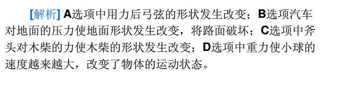 力作用于物体,不仅使受力物体发生体积形状的改变 (简称形变),还可以使物体运动的快慢程度或方向发生改 变(简称运动状态改变)。