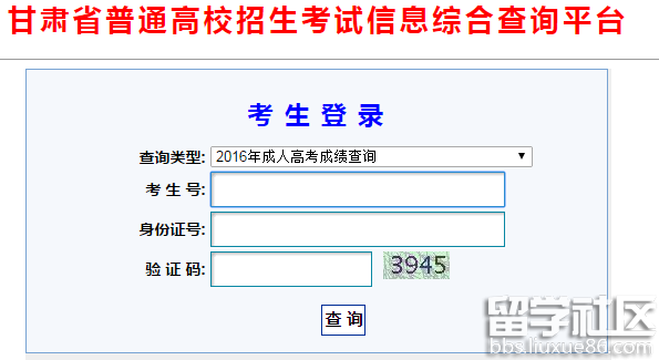2016年甘肃成人高考成绩查询入口甘肃省教育考试院11月21日开通,考生可以进入甘肃省教育考试院或者点击下面图片及时查分。