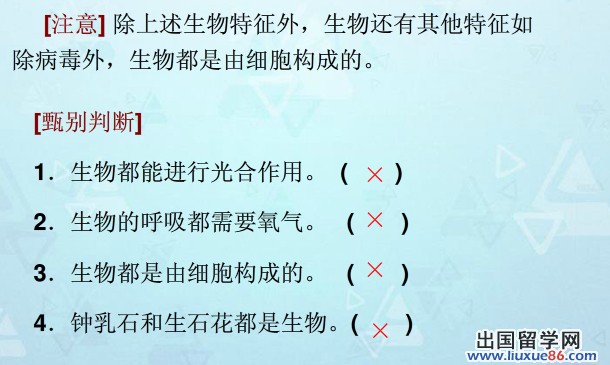 出国留学网为您整理“中考生物《生物与环境》知识点:生物的特征”,欢迎阅读参考,更多精彩内容请继续关注我们的网站(www.liuxue86.com)。