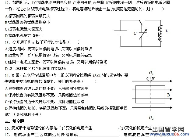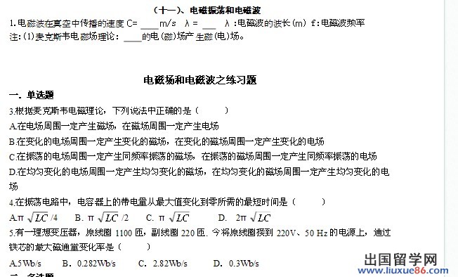 “电磁场与电磁波”部分考查内容要点为: