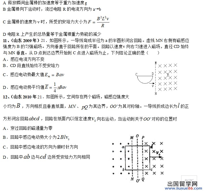 出国留学网高考网为大家提供高考物理第一轮复习:电磁感应,更多高考资讯请关注我们网站的更新!