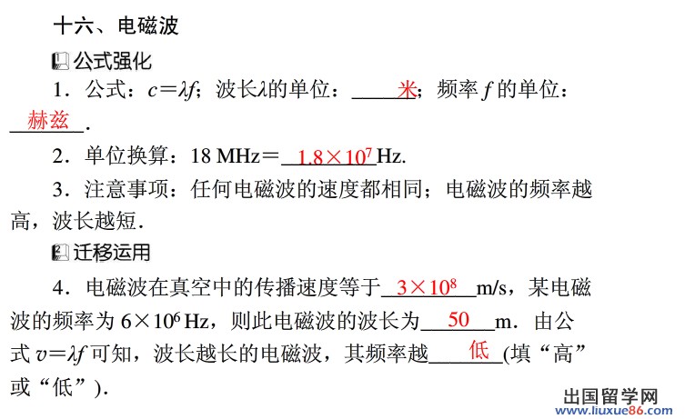 2.记住电磁波的传播速度。