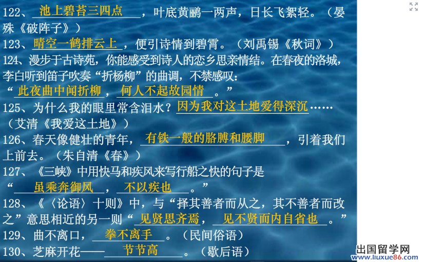 复习建议:适当阅读一些课外语段,不必太多,但要举一反三。