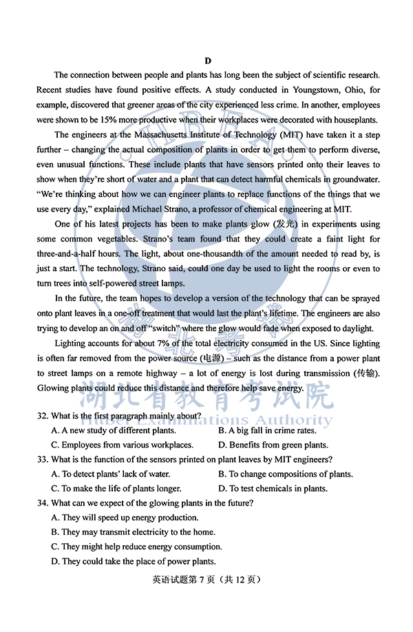 出国留学网为您精心准备了“2019年福建高考英语试卷及答案(图片版)”,希望对您有用,更多高考相关资讯信息请关注本站哦!