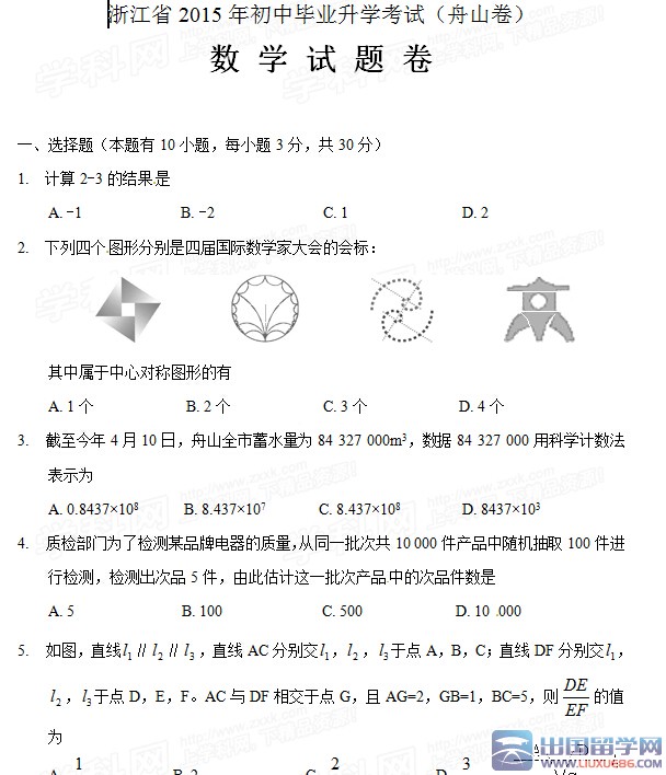 来源:舟山市教育局考试中心