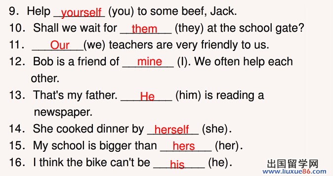 1)物主代词既有表示所属的作用又有指代作用,例如: