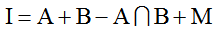 利用两种属性将总数进行分类的计数问题,可分别用A,B表示属性,I表示总数,M表示两个属性都未包含的部分,则可以得到
