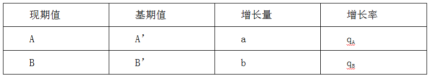 (1)单一数据问题:已知某个统计指标的现期值、基期值、增长量、增长率的一个或者多个,求这个统计指标的现期值、基期值、增长量、增长率问题