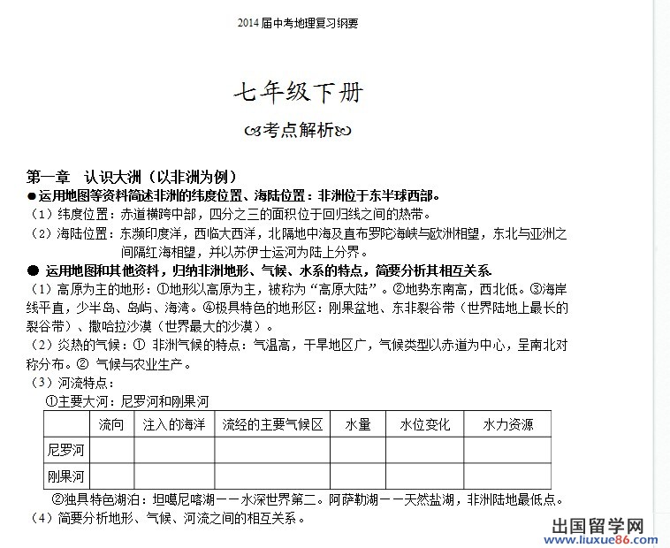 初中学生学业负担较重,不同程度地存在畏难或厌学情绪,而地理科课时少,内容多,记忆难度大,所以激发学生兴趣、指导学习方法、减轻学生负担显得尤为重要。出国留学网中考频道精心心为大家汇总了中考地理备考资料,可以供同学和家长们参考。