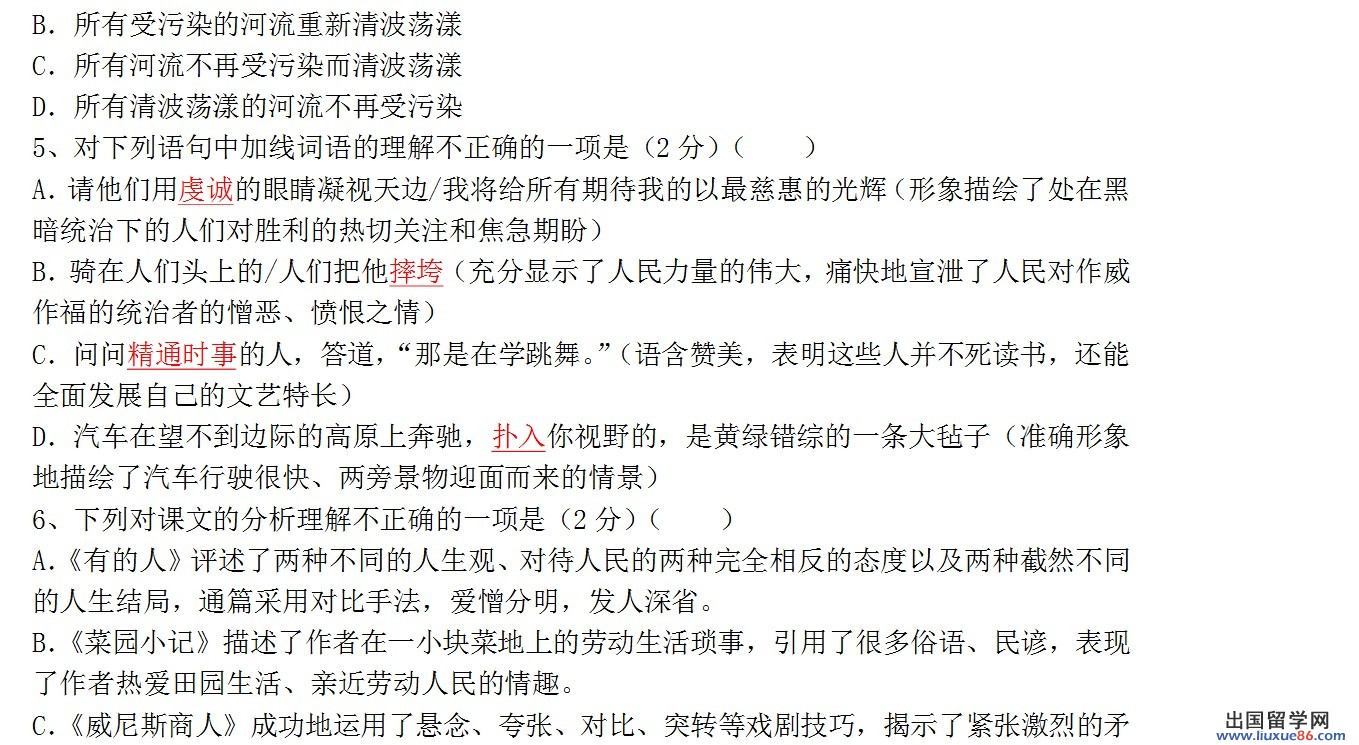 又到了期末考试的时候了,出国留学网小编给大家提供一些试题以供参考,希望大家好好复习取得好成绩哦。