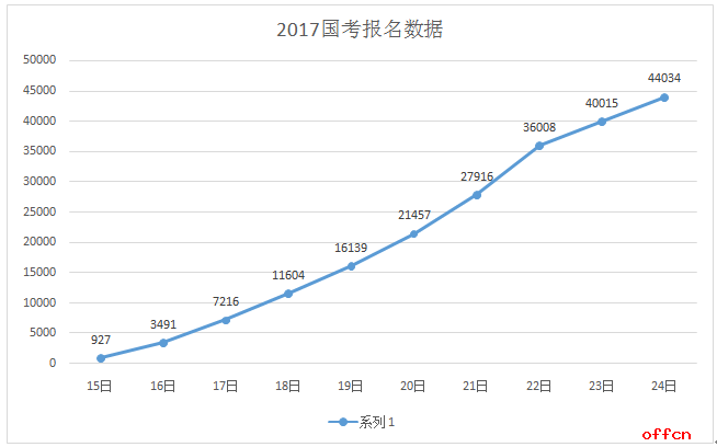 下图是2017年国考每日报名情况公务员考试报名,应该慎重选择职位,但也不要拖到最后一天才报名,4号左右报名最为合适,即使审核没通过,也有重新改报其他职位的时间。