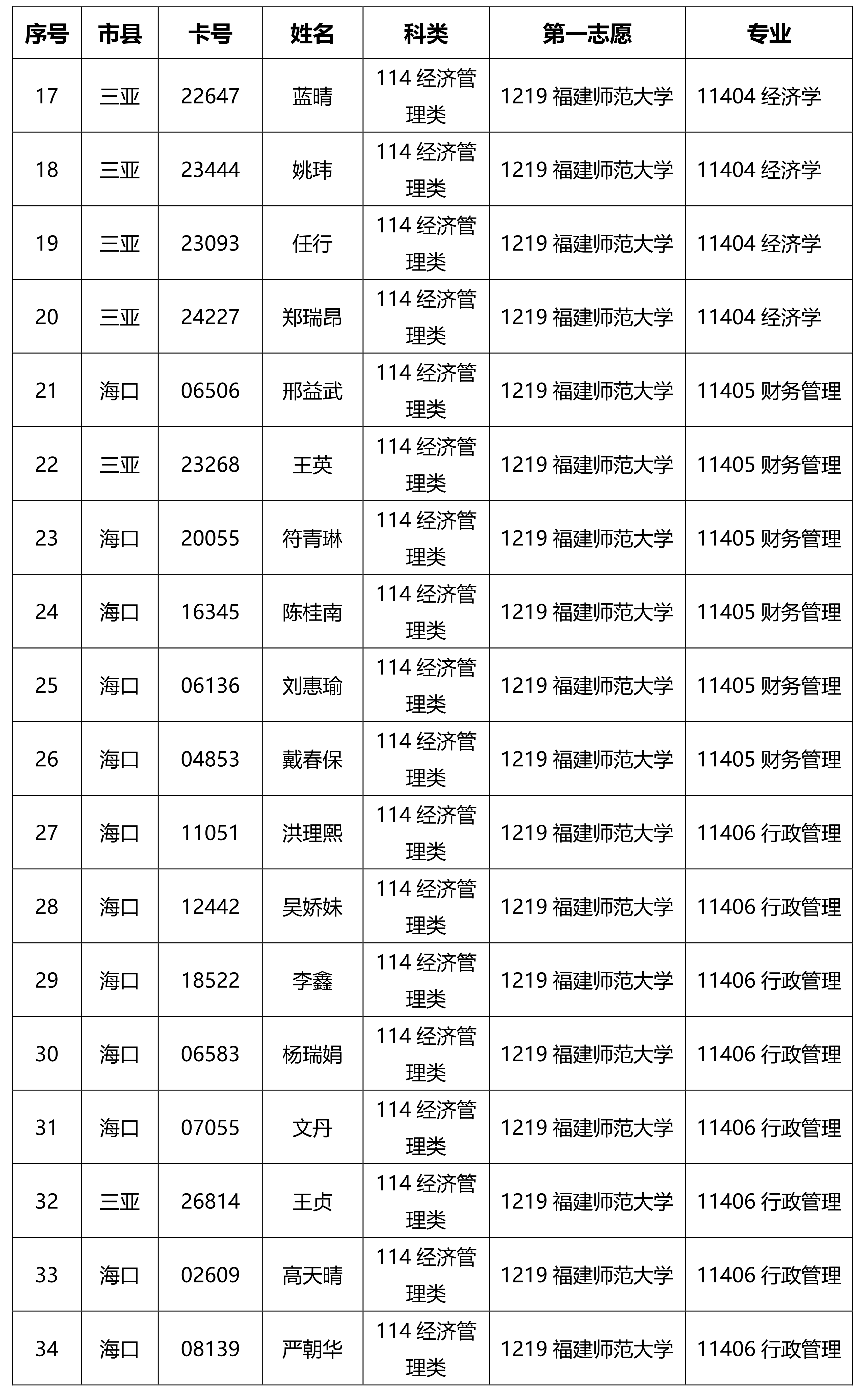 附件:海南省2022年成人高考第一志愿填报“0”专业计划考生名单