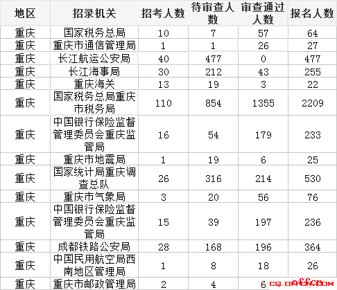 截止到24日16:00,重庆地区的报名人数已达4554人,有2356人通过审查,占总报名人数的51.7%,另外还有2198人待审查。