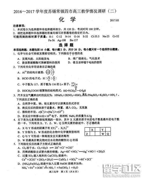 2017苏锡常镇四市高三调研正在进行中,出国留学网高考网小编整理了2017苏锡常镇四市高三调研试题及答案,供同学们参考学习。?更多高考一模试题及答案请点击>>>全国各省市2017高三一模(高三一诊)试题及答案汇总??