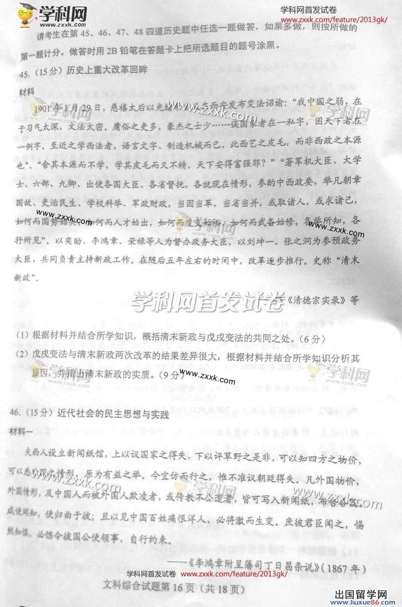 备受关注的高考已经开考,2013陕西高考也已经揭开神秘面纱的一角,高考网会在第一时间将最新出炉的2013陕西高考文综真题呈现出来,让大家一睹为快。2013陕西高考真题及答案发布将在此表页的头条显示,请按crtl+F5进行刷新。