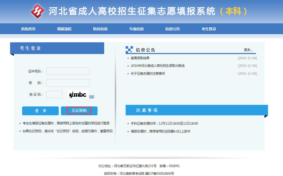 2017年河北成人高考密码重置操作