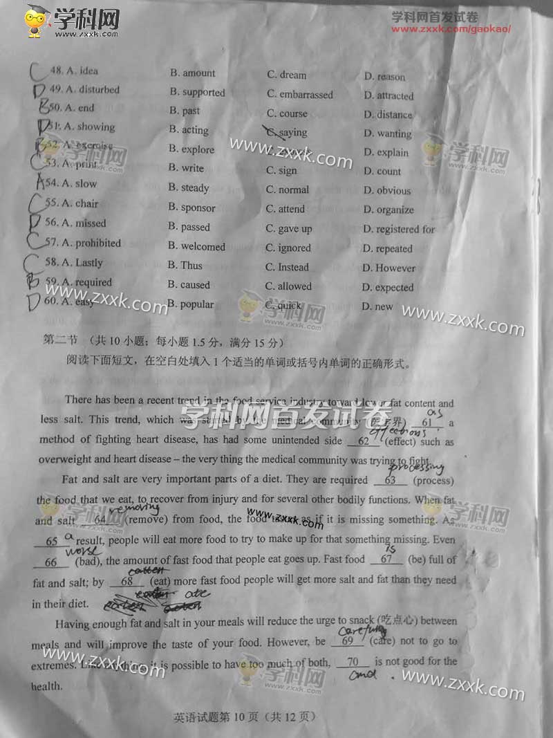 十二年磨一剑,用在此时!调整好心态,正常发挥吧。出国留学网高考栏目为您提供2017年黄石高考英语真题,希望考生们取得好成绩。