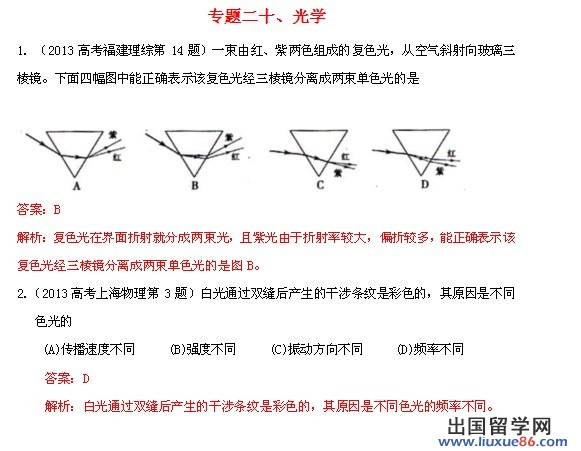 出国留学网高考频道在考试后及时公布各科高考试题答案和高考作文及试卷专家点评。请广大考生家长关注,祝福广大考生在2013年高考中发挥出最佳水平,考出好成绩!同时祝愿决战2014高考的新高三学员能倍加努力,在2014年高考中也能取得优异的成绩。
