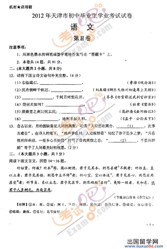 2012天津中考推荐访问