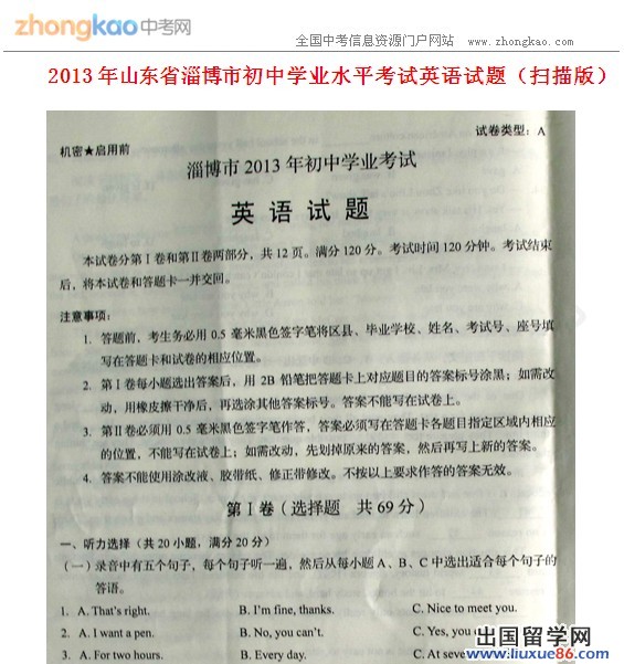 2013年中考将会来临,各大省市的中考学子都在紧张复习状态,小编也是为他们鼓气加油。考试只是一次评测,学子只要认真做题一定可以考出佳绩。出国留学网与大家一样对于中考试题十分关注,并且会在最快时间内为大家更新出所需信息资料,只需链接出国留学网即可。