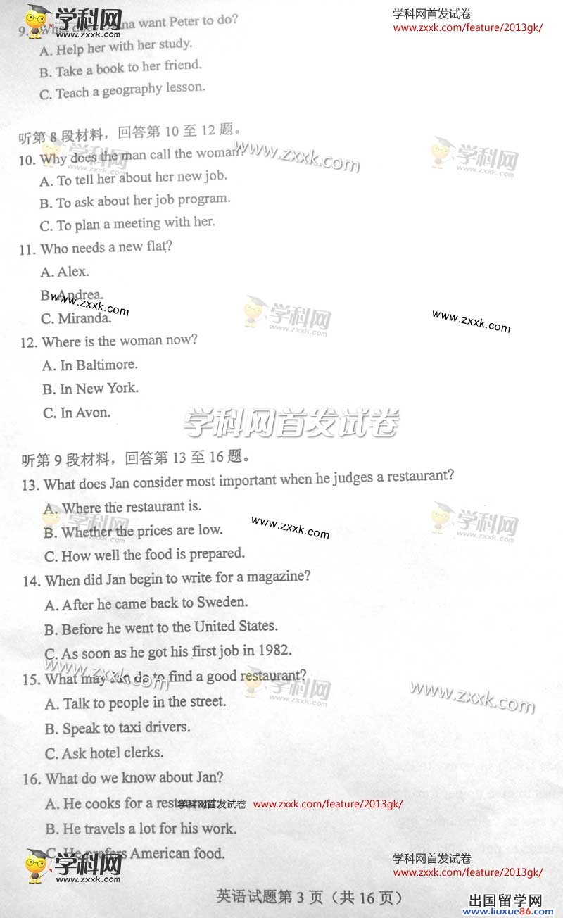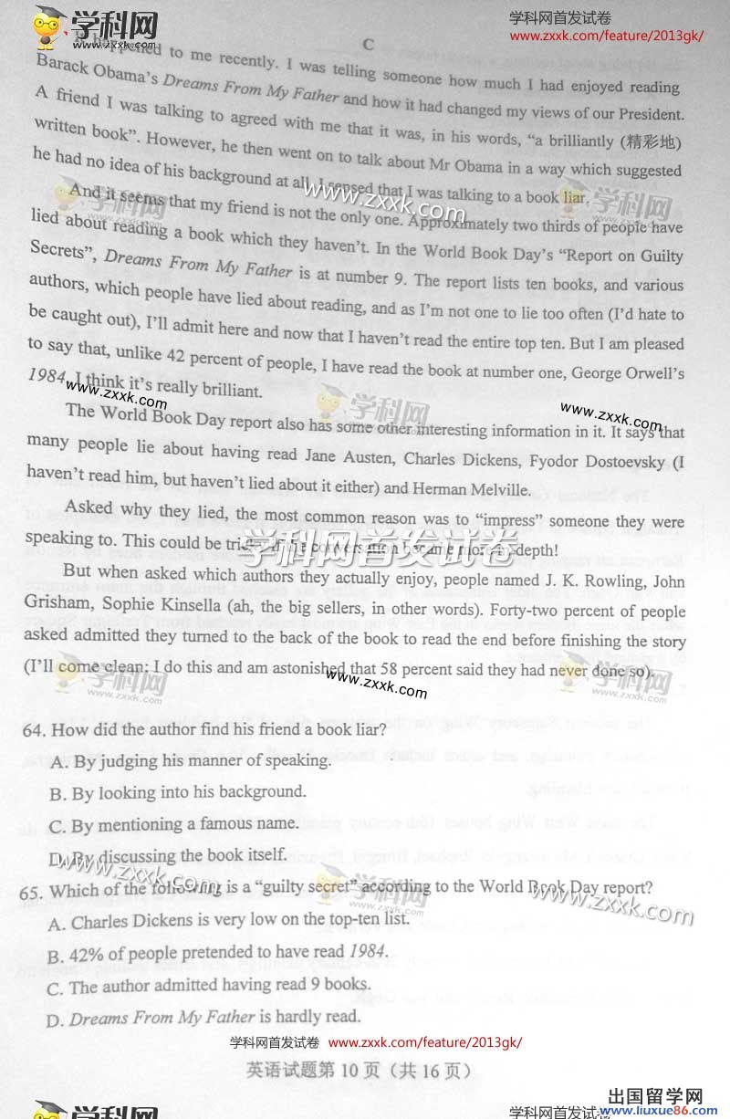 推荐阅读:2013年山西高考语文试题及答案