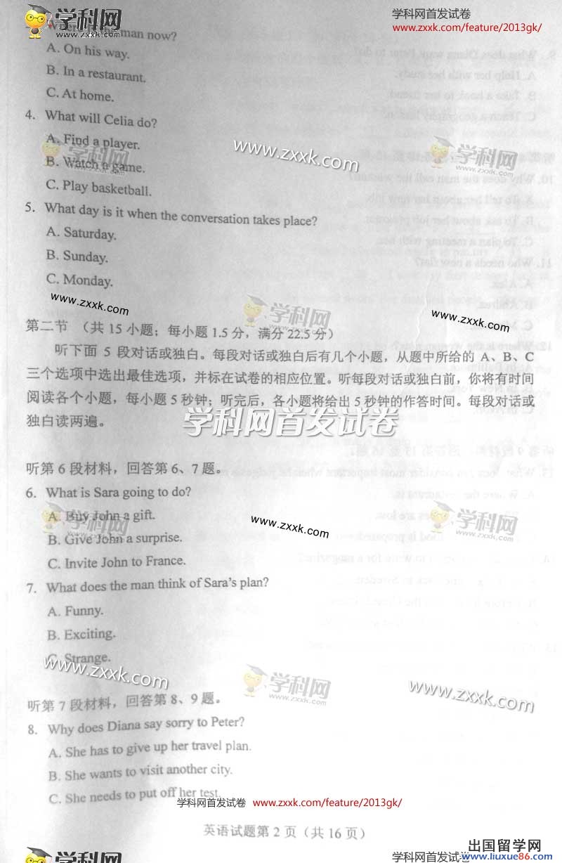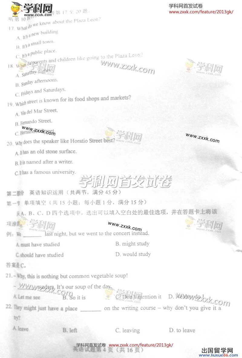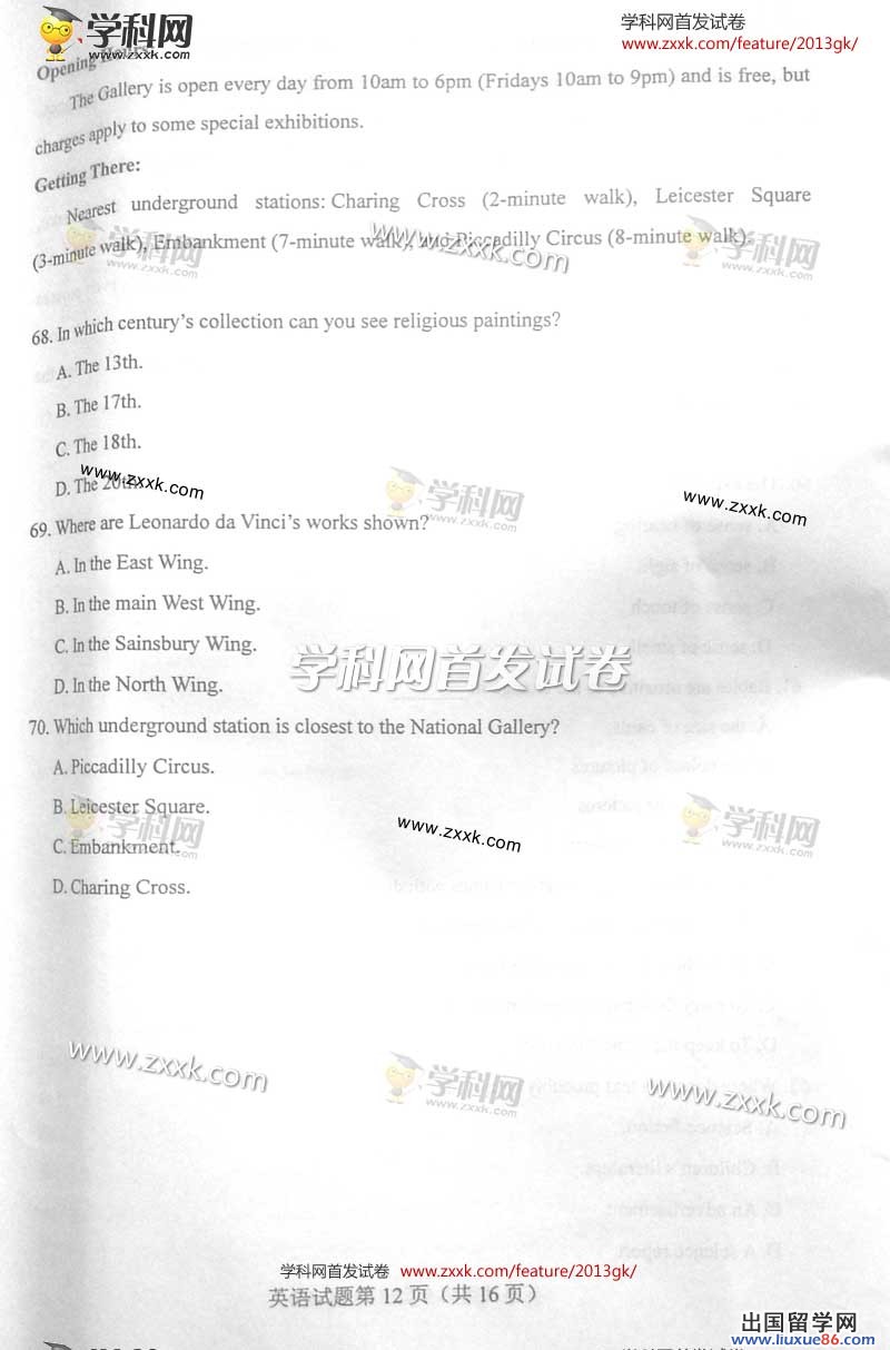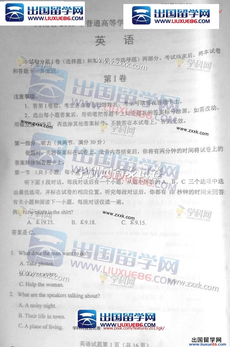 2013年山西英语高考时间:6月8日下午午15:00—17:00开考,出国留学高考网在6月8日英语考试结束后第一时间公布2013年山西高考英语试题及答案,方便同学们估分。更多高考相关信息请点击www.liuxue86.com/gaokao/查询。