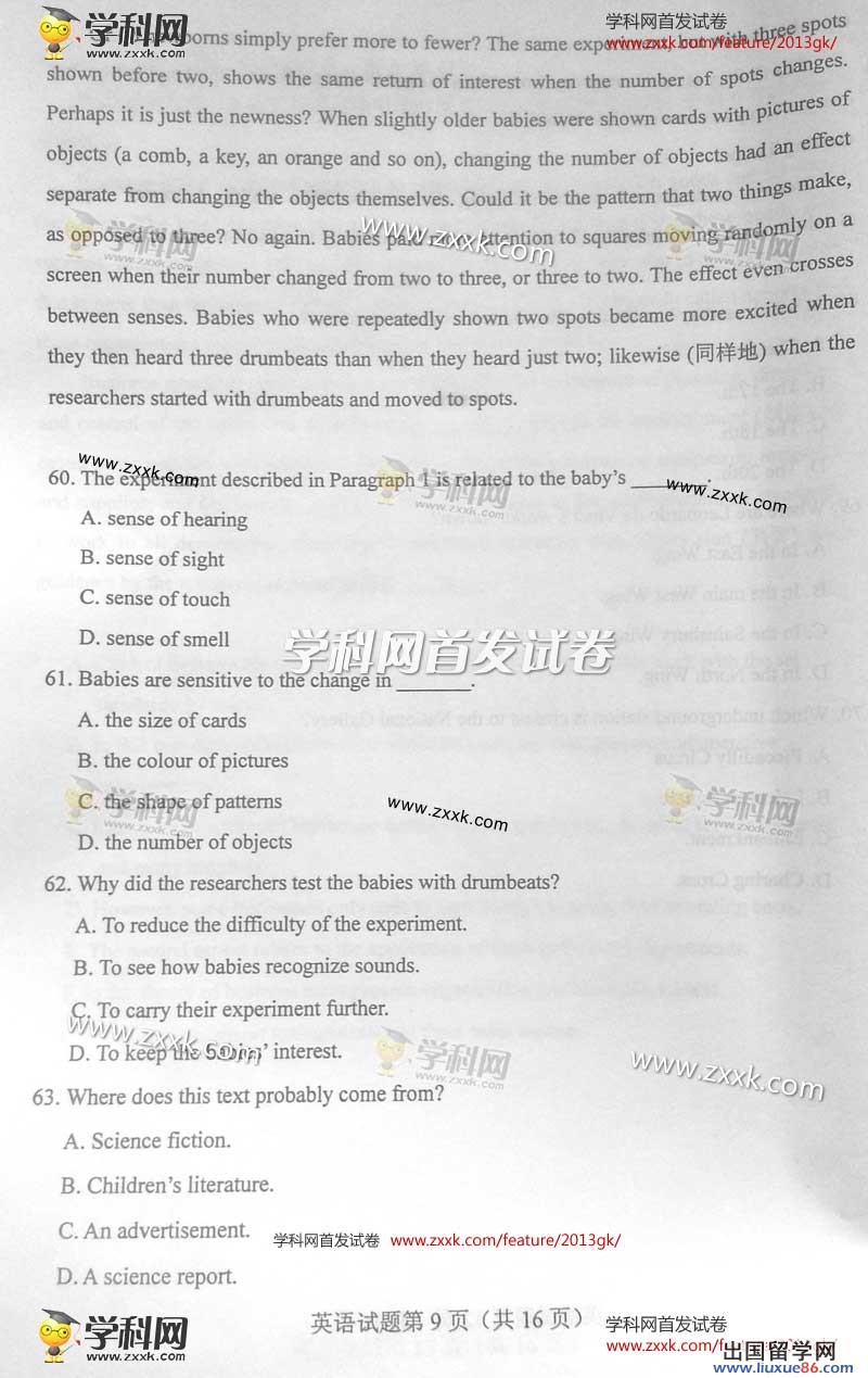 出国留学网专题频道2013山西高考英语真题栏目,提供与2013山西高考英语真题相关的所有资讯,希望我们所做的能让您感到满意!