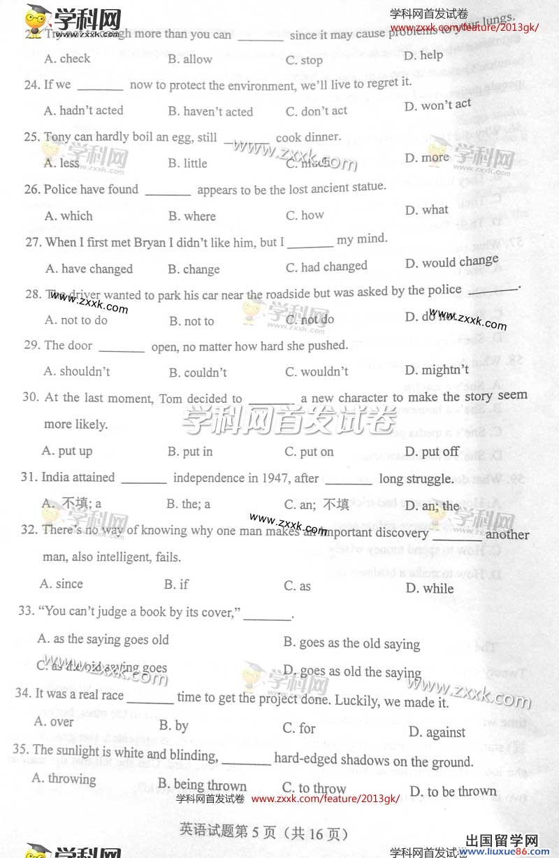 欢迎点击查询更多关于2013山西高考英语模拟试题!预祝考生顺利通过考试!!