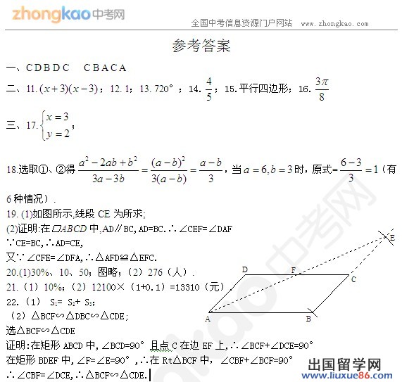中考如今已结束,随之中考试题及相关信息将备受关注。为了让大家能够在闲暇之余获悉中考试题的相关资料信息,来自出国留学网中考试题频道的小编将在第一时间给大家公布各省市的中考试题,请在同一时间锁定我们的网站。更多省份城市中考试题信息请登录www.liuxue86.com/ 。
