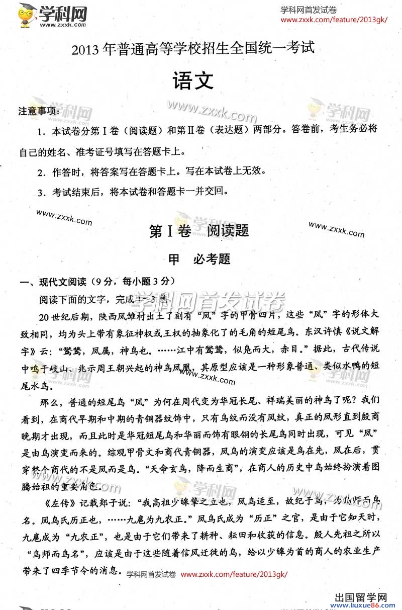 2013贵州高考语文考试定于6月7日上午举行,高考网将在考后第一时间为各位考生和家长发布2013贵州高考语文答案,方便大家的估分工作,同时,我们也将在第一时间为您发布2013贵州高考各科目真题及答案