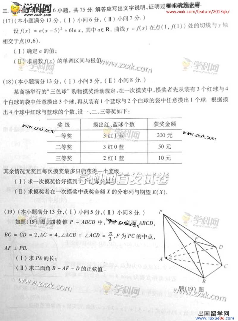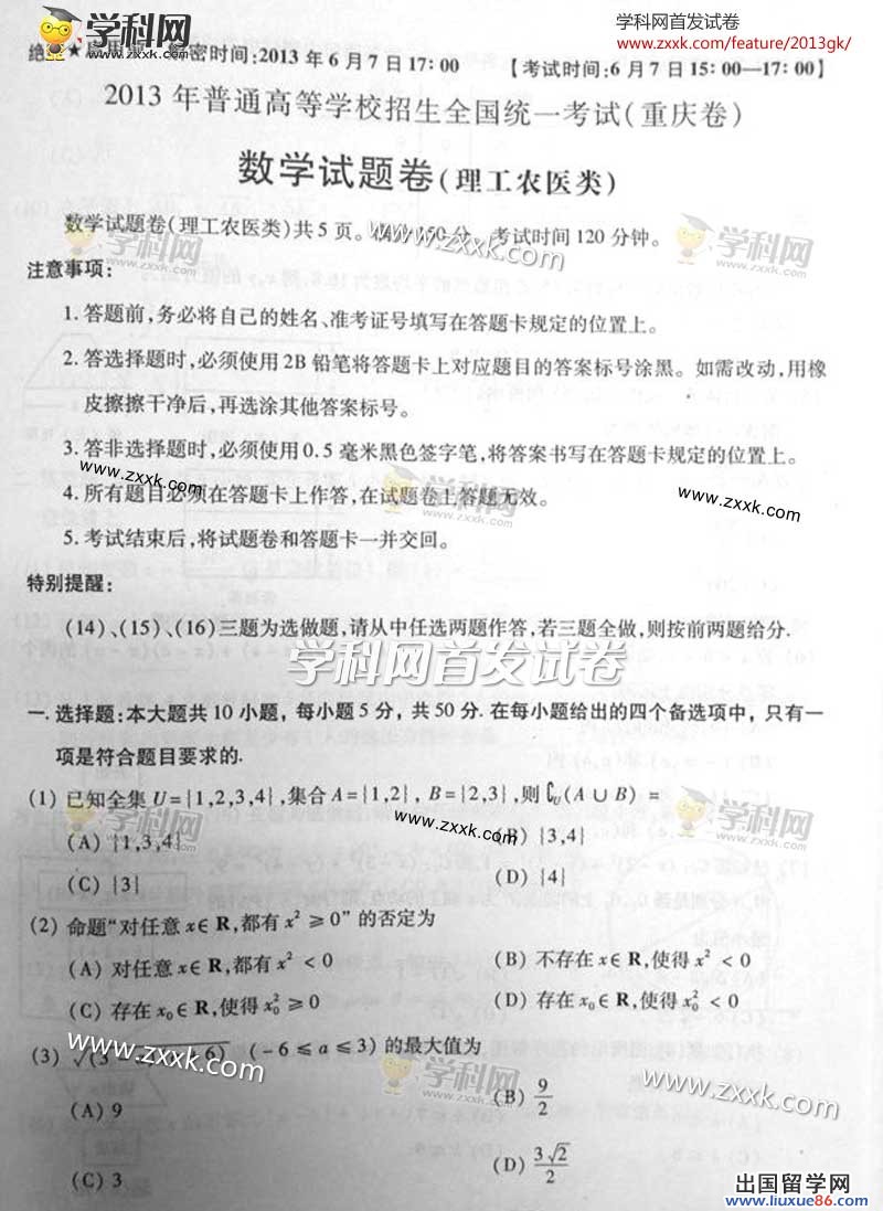 2013高考时间安排在6月7日、8日、9日进行,出国留学网将在考后第一时间为广大考生公布2013年重庆高考数学试题、高考数学答案,考生可关注各科2013年高考真题频道和各科2013年高考答案频道进行查询2013年高考真题和高考答案,考生也可收藏出国留学网高考真题及答案频道。