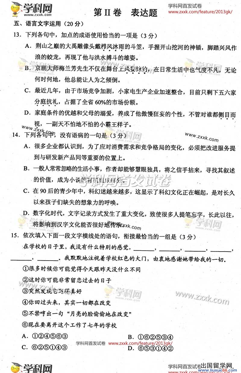 2013青海高考语文考试定于6月7日上午举行,青海高考频道将在考后第一时间为各位考生和家长发布2013青海高考语文答案,方便大家的估分工作,同时,我们也将在第一时间为您发布2013青海高考各科目真题及答案,欢迎您收藏本网站。