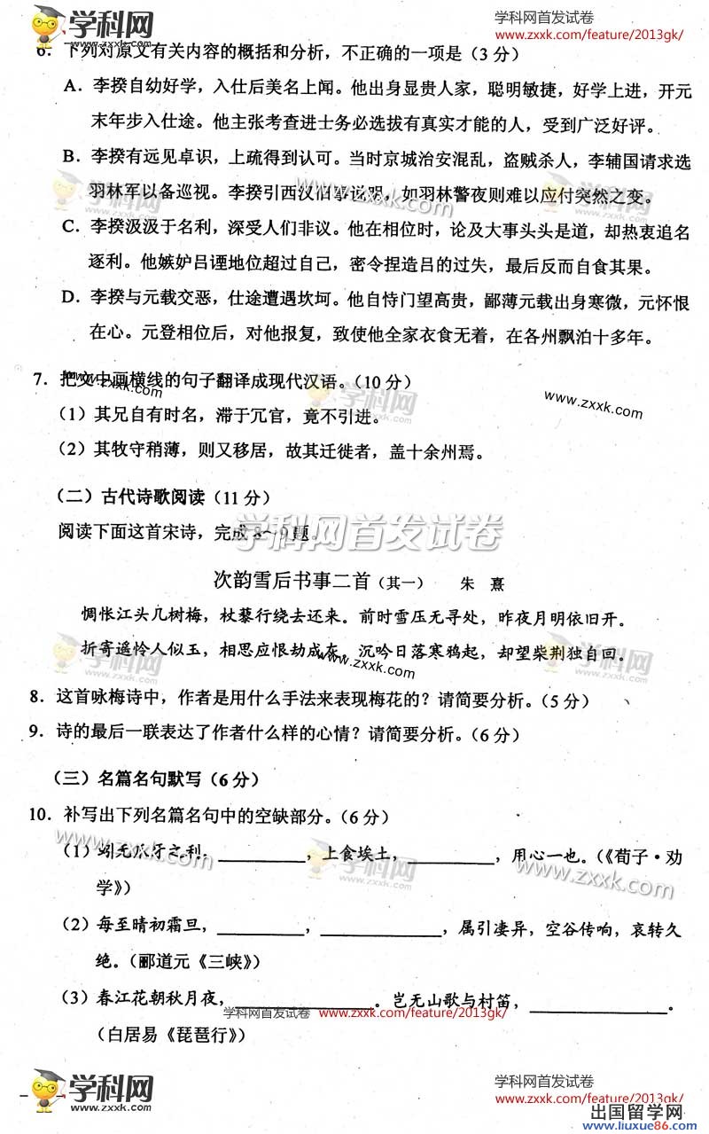 2013年青海高考将于6月7日至9日进行,考后高考网将在第一时间发布。为方便您随时查阅2013年高考答案,建议您将该页加入本地收藏夹www.liuxue86.com,我们将即时更新。