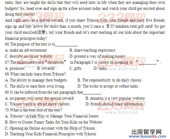 高考即将面临,出国留学网在这里为大家收集了丰富的考试试题,以帮助各位顺利圆满的完成高考,考上一个理想的大学.<出国留学网小编留>