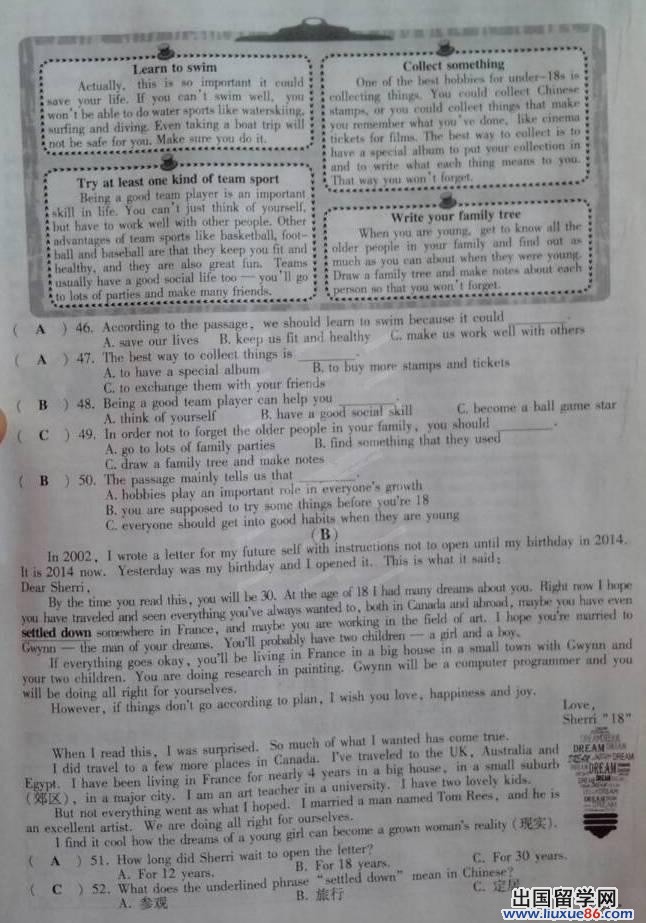 出国留学网专题频道2014中考英语栏目,提供与2014中考英语相关的所有资讯,希望我们所做的能让您感到满意!