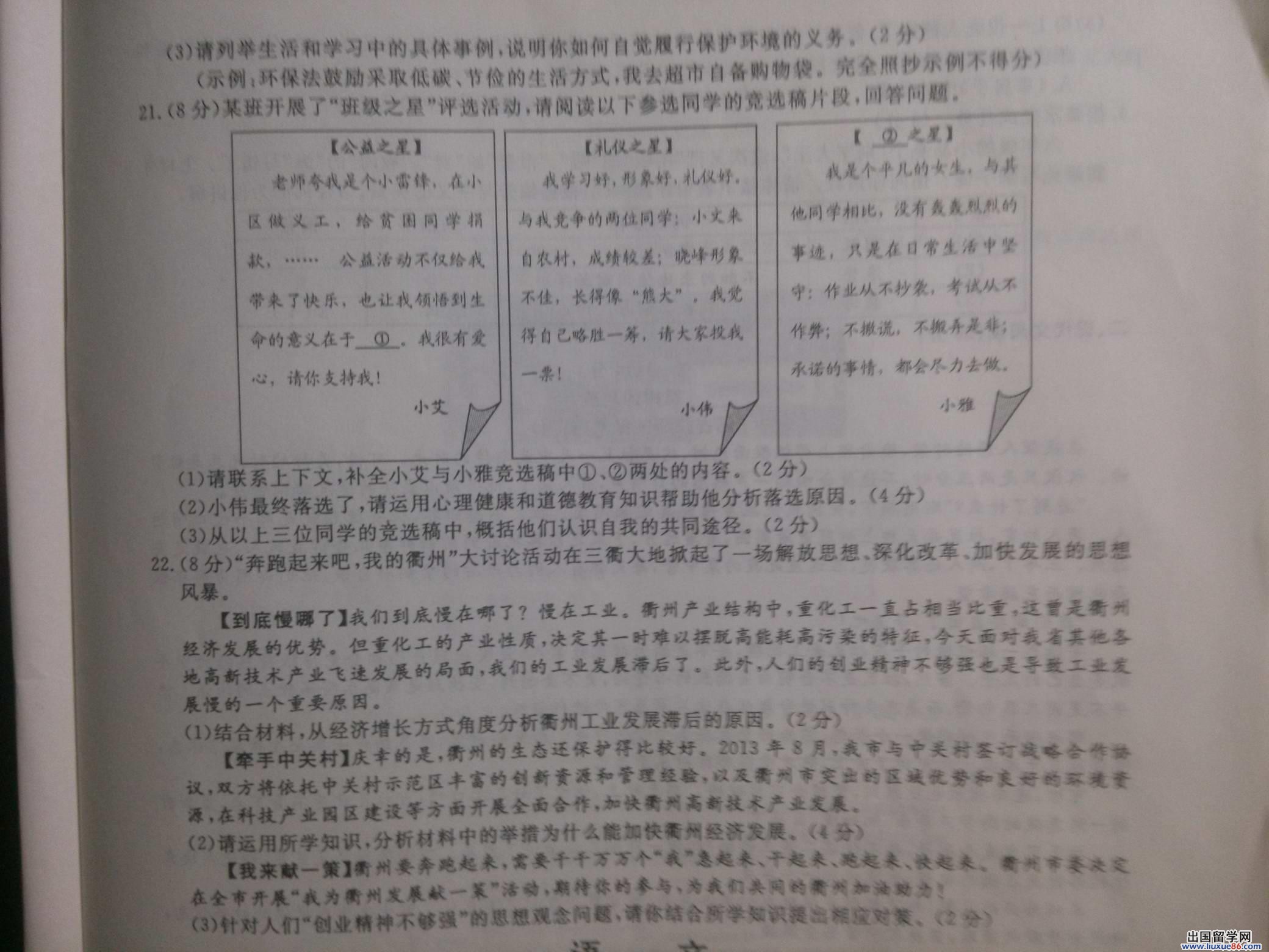 以下2014衢州政治真题及答案由出国留学网中考频道为您提供,希望对您有所帮助!