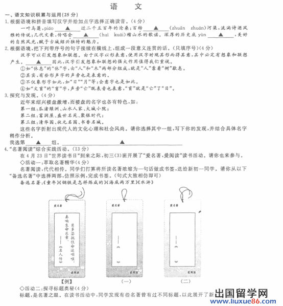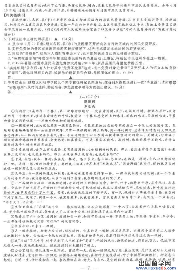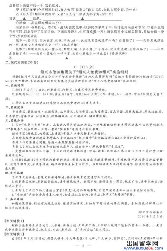 以下是出国留学网中考频道为您提供的2014绍兴中考语文试题及答案,希望对您2014年中考有所帮助!