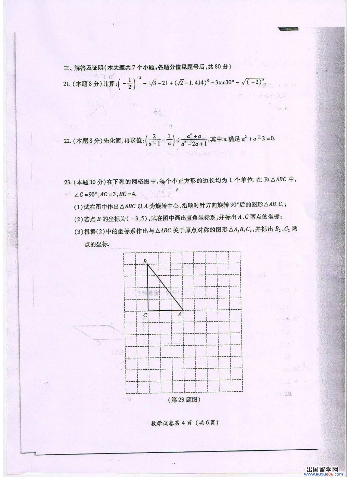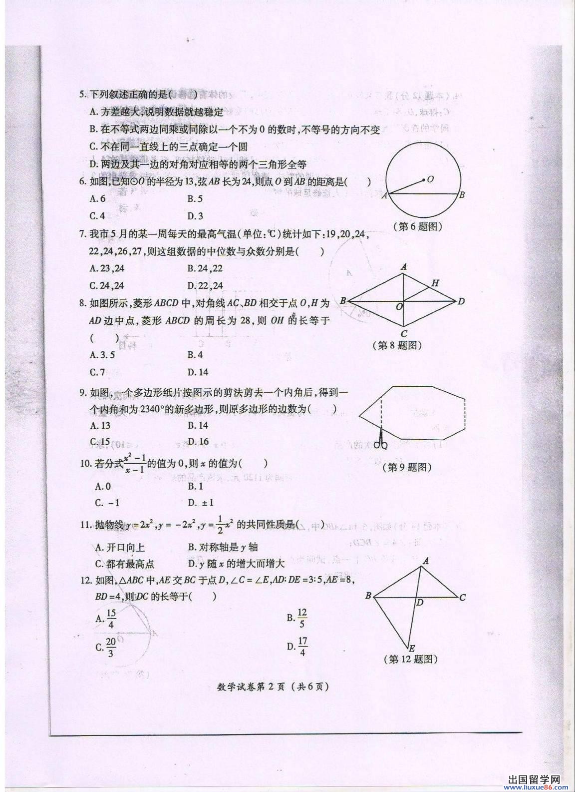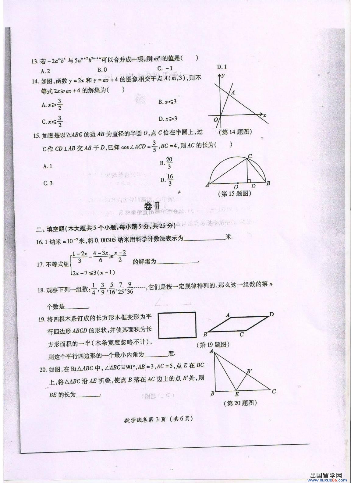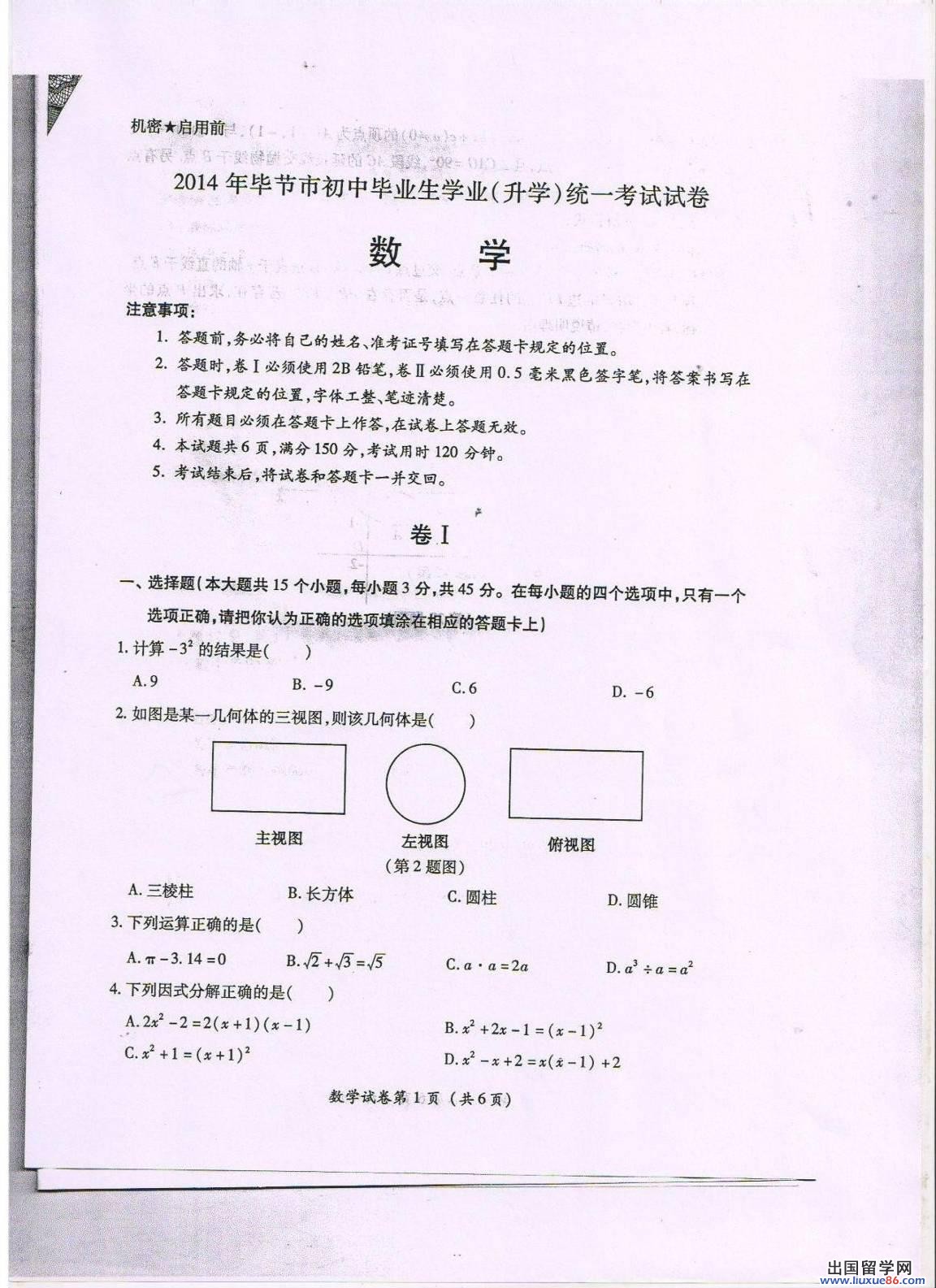 出国留学网中考频道第一时间为您公布2014毕节中考数学试题,希望大家喜欢。
