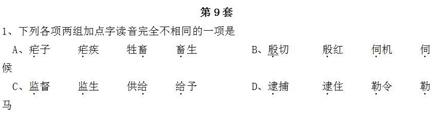 伺候cì C.监督jiün监生jiàn供给予jǐD.逮捕dài 逮住dǎi 勒令la 勒马la) ....jǐ给.....
