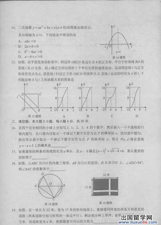 以下2014年兰州中考数学真题及答案由出国留学网中考频道为您提供,希望对您有所帮助!