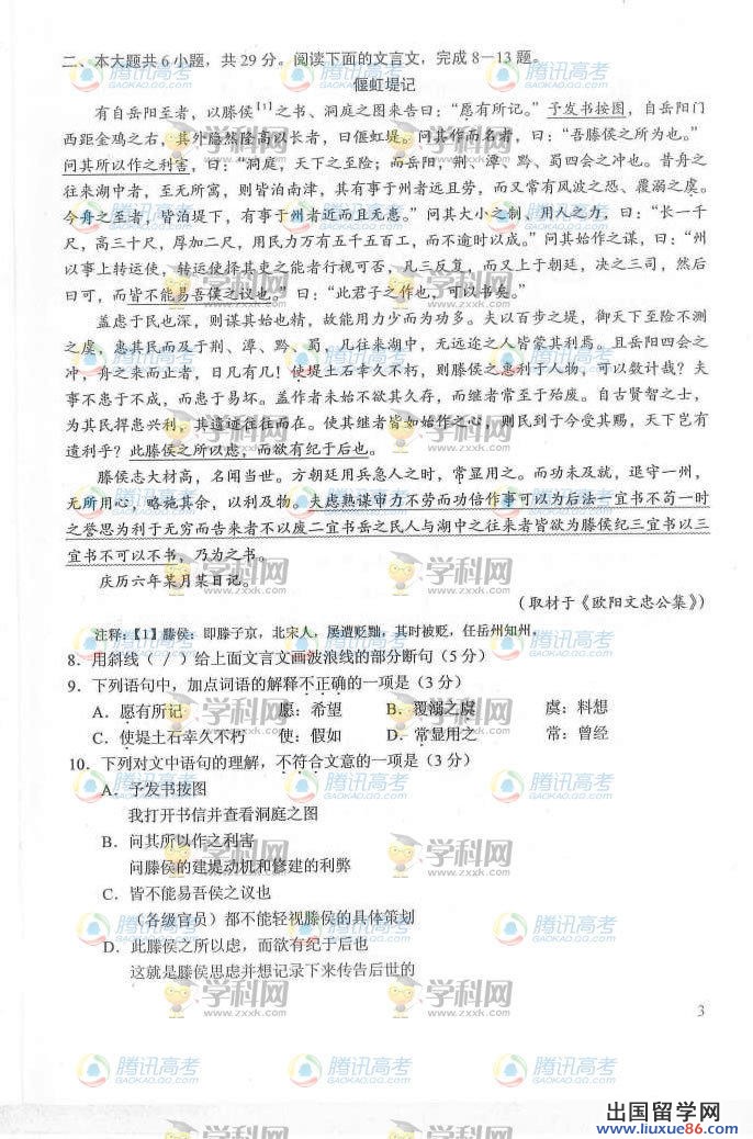 难忘墙上的那些日历一页页撕去,难忘黑板上的倒计时数慢慢变小。2014高考时,出国留学网小编先祝所有高考学子,高考成功,永创佳绩!同时出国留学网高考频道会及时为广大考生提供2014年北京高考语文真题及答案,同时接下来的几个科目的真题及答案亦会在此频道显示,请考试及家长关注本站更新(ctrl+D收藏即可)。