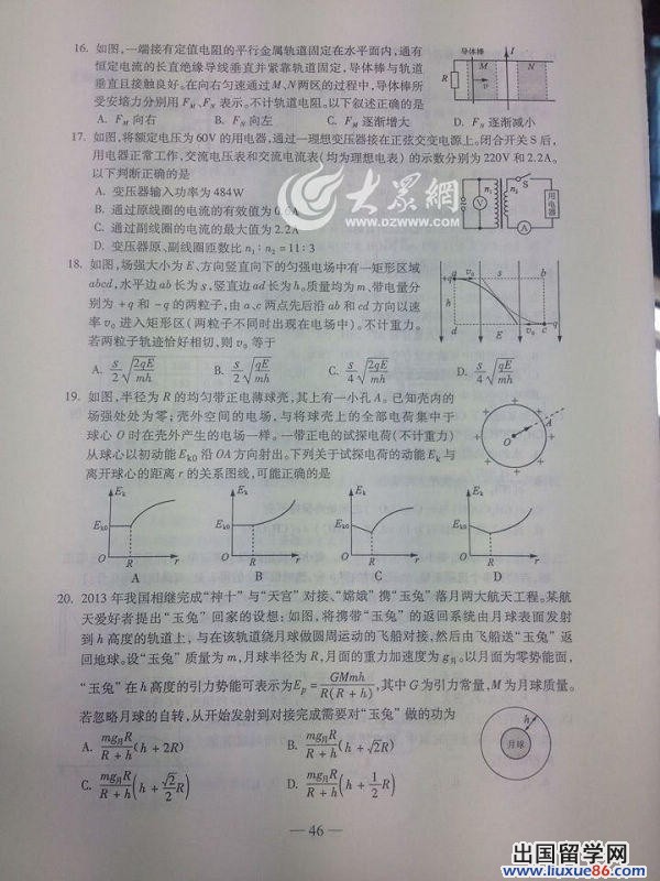 出国留学网高考频道为您提供2014年山东高考理综真题及答案,希望对您有用!
