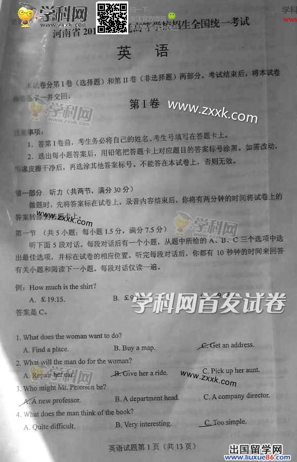 2014年高考虽然已经结束了,但是它已经深深的印在了大家的心里,成为最宝贵的记忆被储存,为了大家能够更好的估分,出国留学网高考频道为您首发2014年山西高考英语真题及答案,我们还将发布最新其他科目的答案,请大家一定要密切关注本网站。