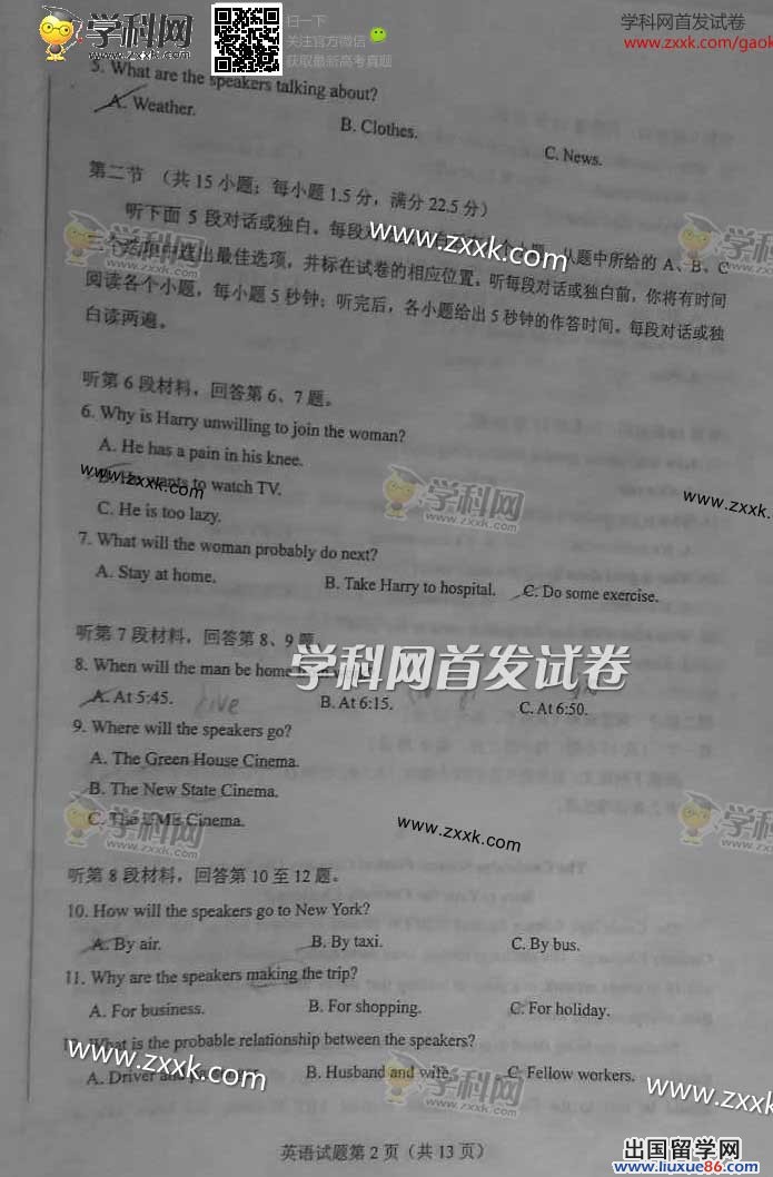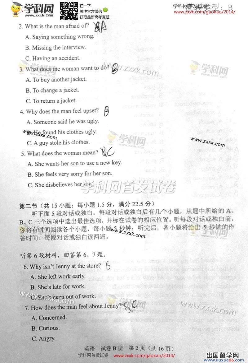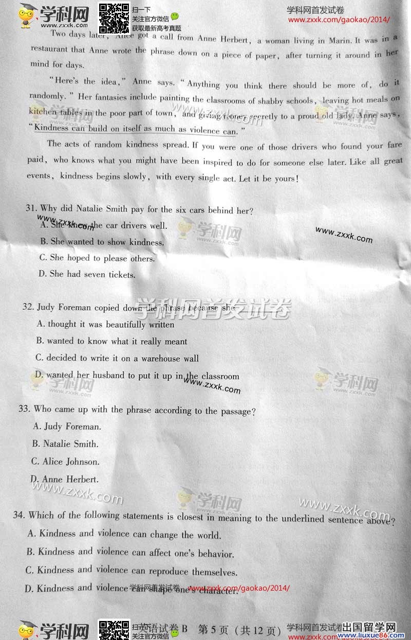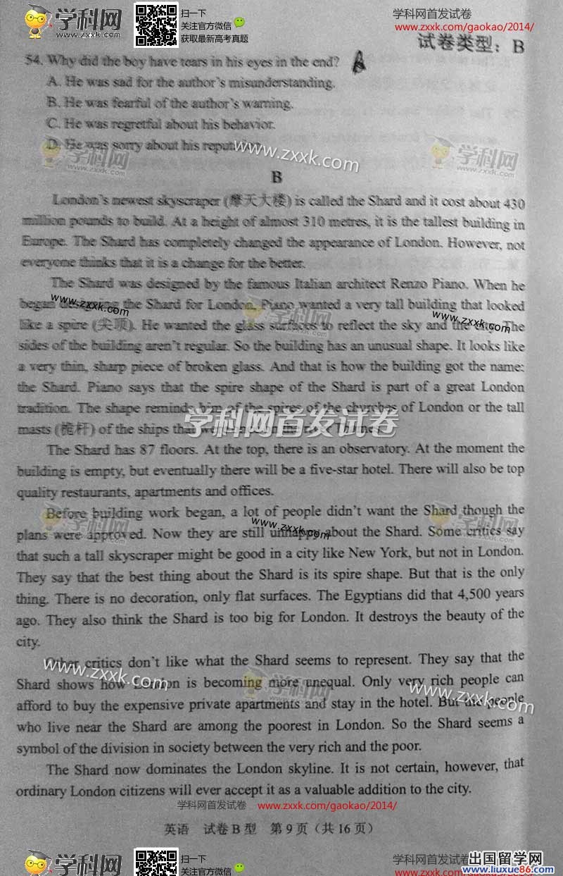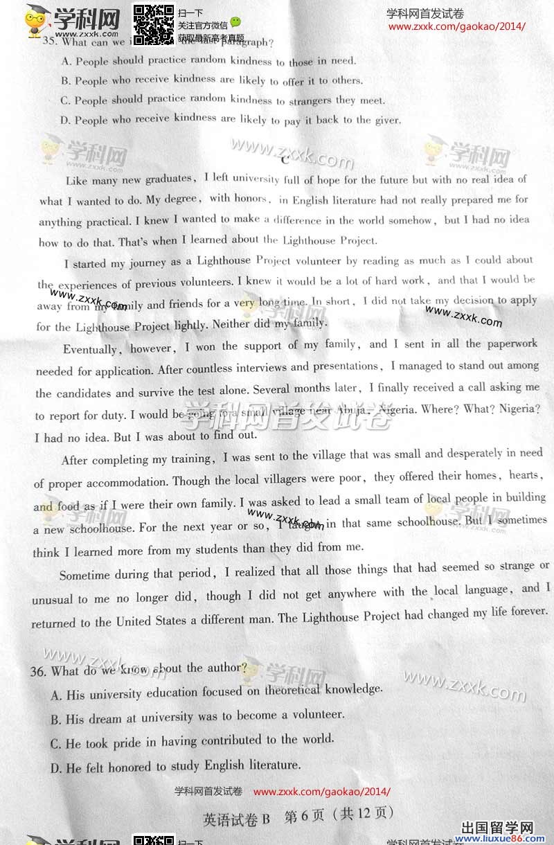 2014年的高考已经到来,出国留学网为您的高考之路保驾护航,青海高考频道考后为您首发2014青海高考英语试题以及参考答案,高考期间请您密切关注出国留学网高考频道,了解最新资讯您可以按CTRL+F5刷新页面,相信自己,您一定可以取得令人满意的成绩。