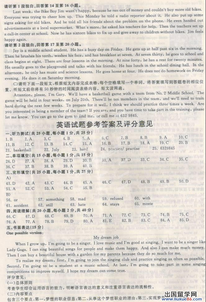 推荐阅读:2014安徽中考英语作文题及范文汇总