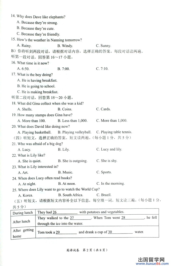 以下2014年来宾中考英语真题由出国留学网中考频道为您提供,希望对您有所帮助!