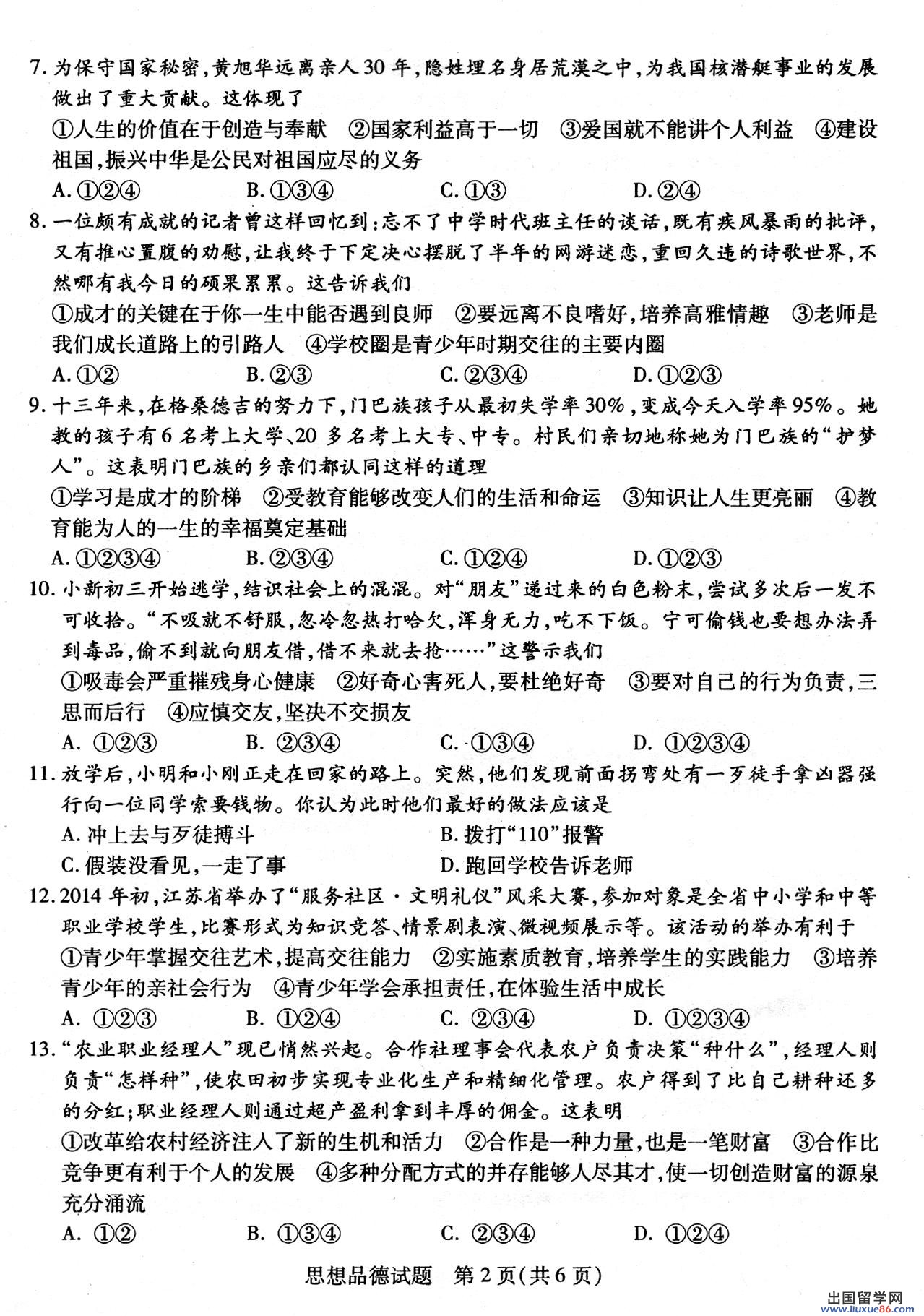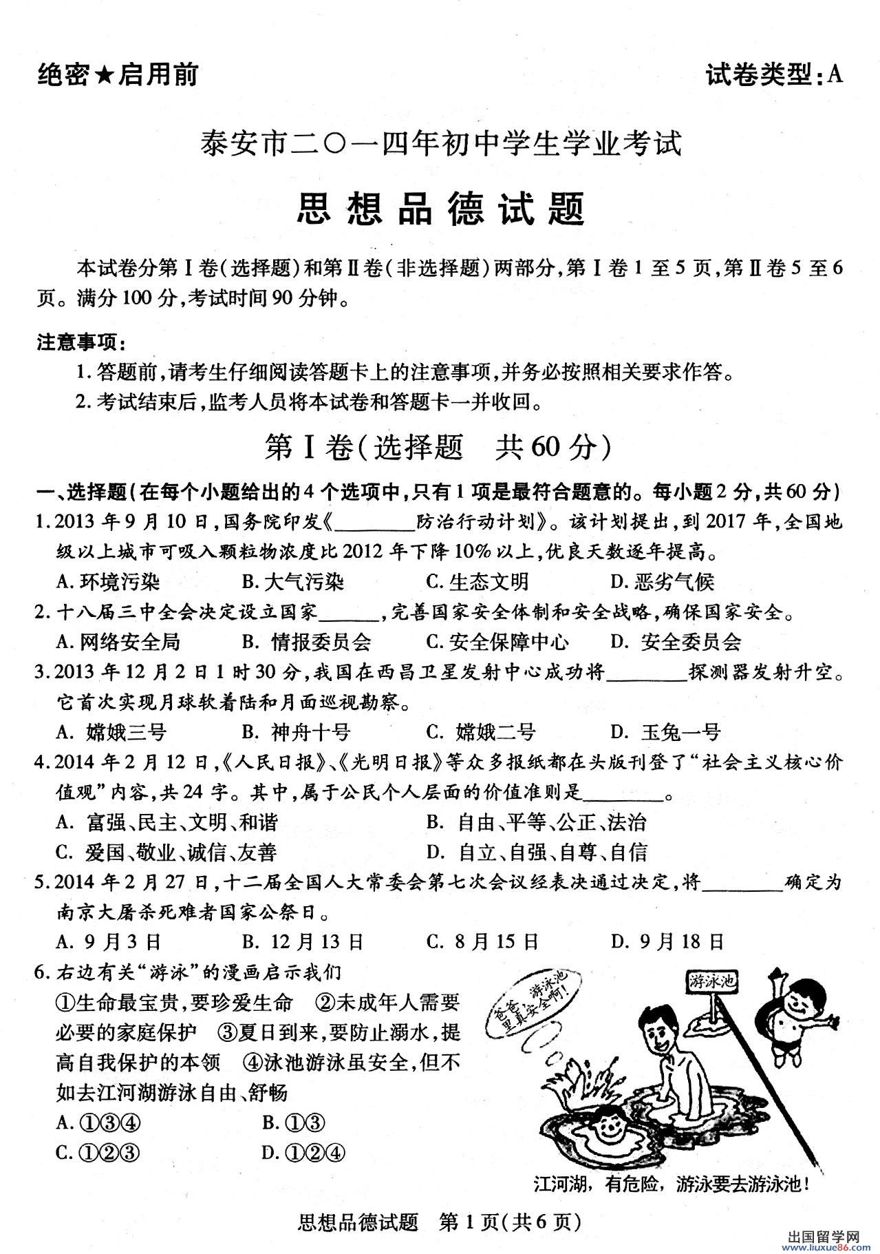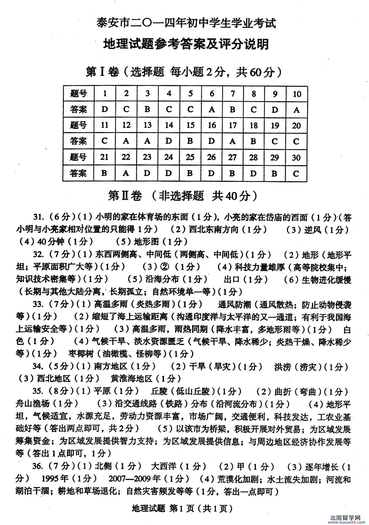 因为有了中考这个火热的六月也成了各位考生心目中的黑色六月,不管怎样,该面对的始终都要面对,出国留学网中考频道会及时为广大考生提供2014年泰安中考生物真题及答案。
