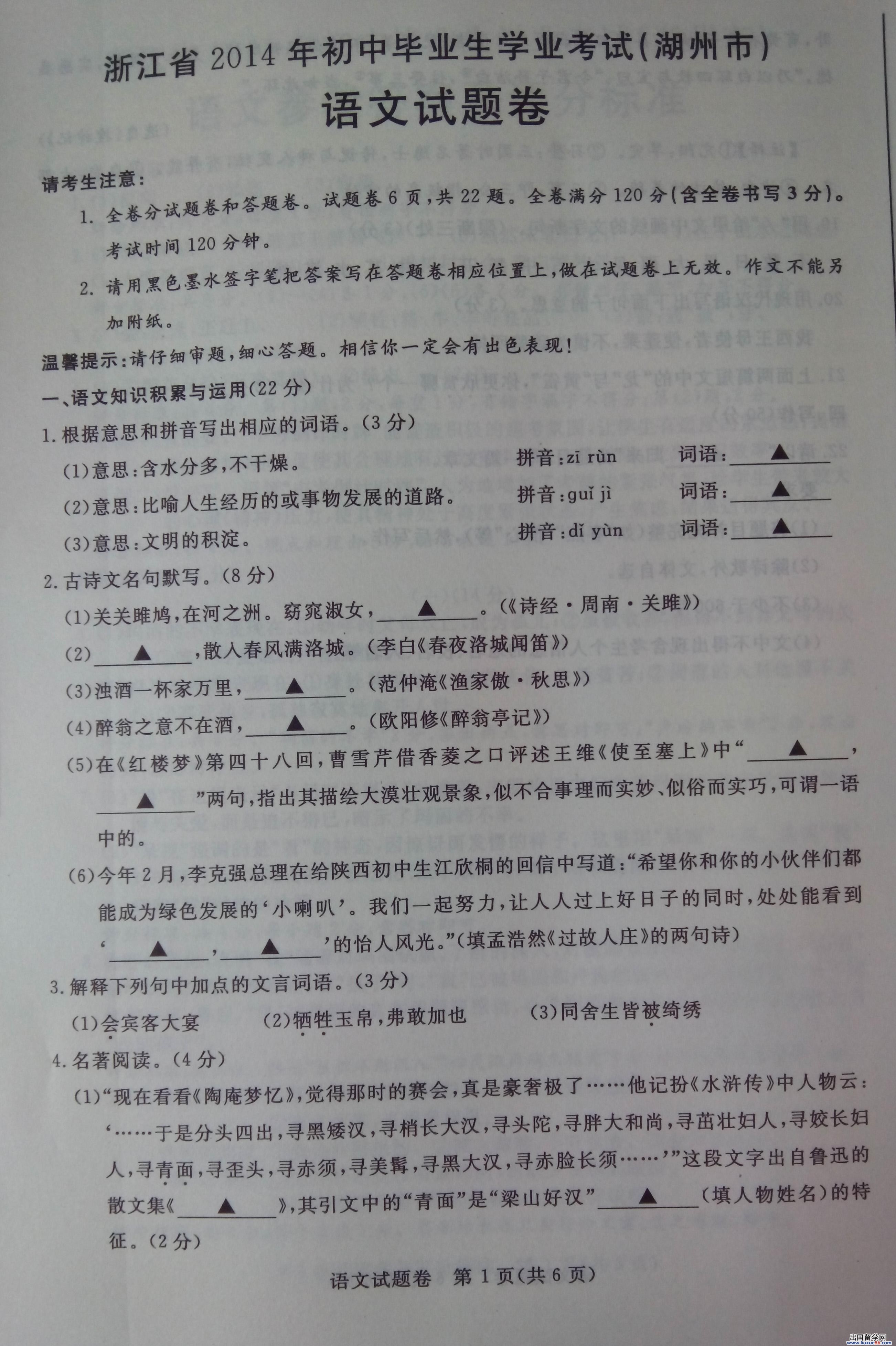金榜题名是所有考生的短期理想及目标,而中考结束意味着这个目标的奋斗可以暂告一段落,那么,大家对自己的成绩是否做到了心中有数呢?大家想要了解自己的中考情况,提前预知自己的中考分数,可以到出国留学网站来,出国留学网中考频道小编紧密关注2014浙江湖州中考英语作文题目及范文,大家可以对照一下自己的答案,希望对您能有所帮助。